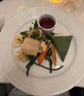 Food played a central role in bringing everyone together. The holiday dinner featured a beautifully composed menu designed to be savored slowly, encouraging conversation and connection. Each course felt intentional, offering comfort and indulgence while matching the refined sensibility associated with South Coast Plaza. As plates were shared and glasses raised, the mood shifted from professional to personal, reinforcing the sense of community among the stylists.